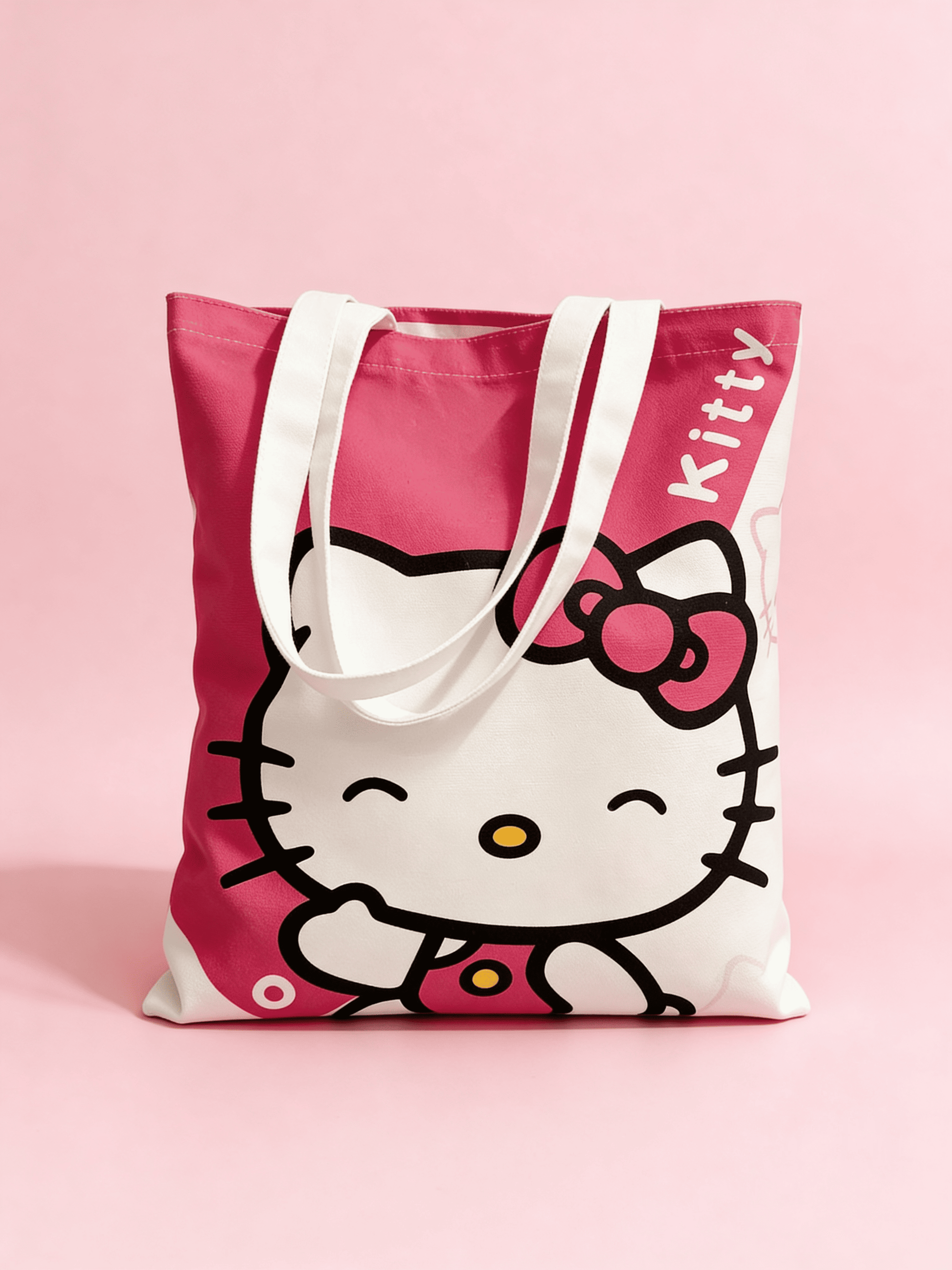 Štýlová plátená taška s motívom Hello Kitty je perfektným doplnkom pre všetkých fanúšikov tejto ikonickej postavičky. Vyrobená z kvalitného, pevného materiálu, ponúka dostatok priestoru na každodenné potreby – či už sa jedná o nákupy, knihy alebo veci do školy.